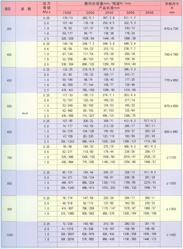 大拉桿橫向型補償器由兩段波紋管、中間接管及大拉桿等零件組成,它能吸收管系任意平面內橫向位移。位移時大拉桿上的球面螺母繞球面墊圈轉動,同時大拉桿還具有承受內壓推力的能力。